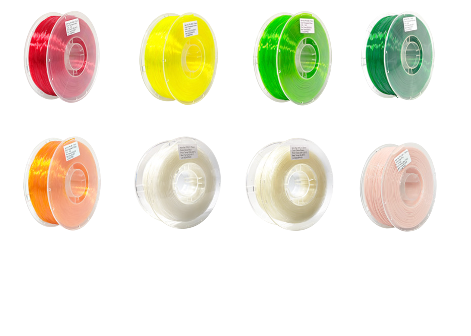 Our TPU (Thermoplastic Polyurethane) filament series offers a versatile range of flexible and durable materials designed for high-performance 3D printing. From ultra-soft elasticity to wear-resistant hardness, our collection covers a wide spectrum of Shore hardness ratings (75A to 72D) to meet diverse manufacturing and hobbyist needs.
