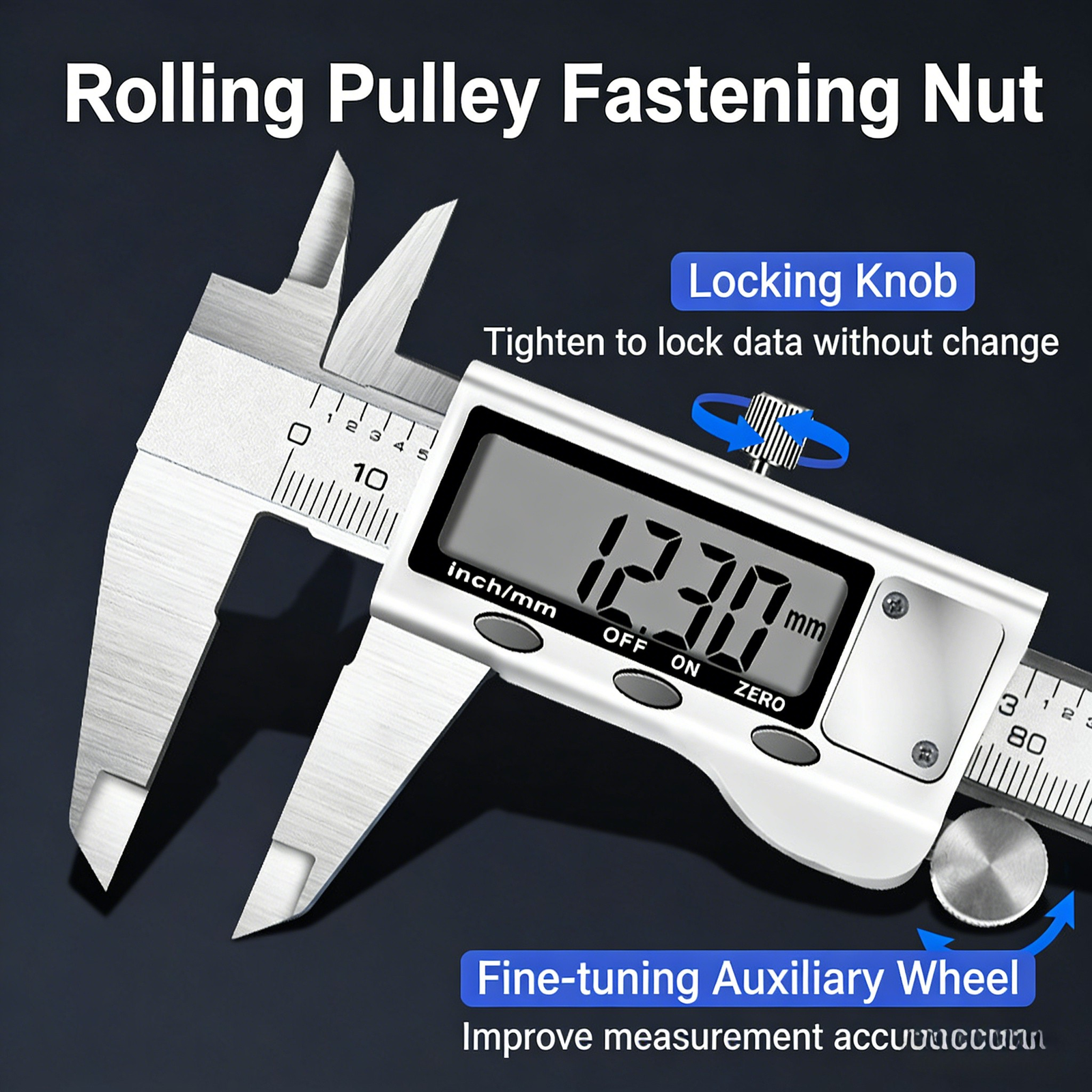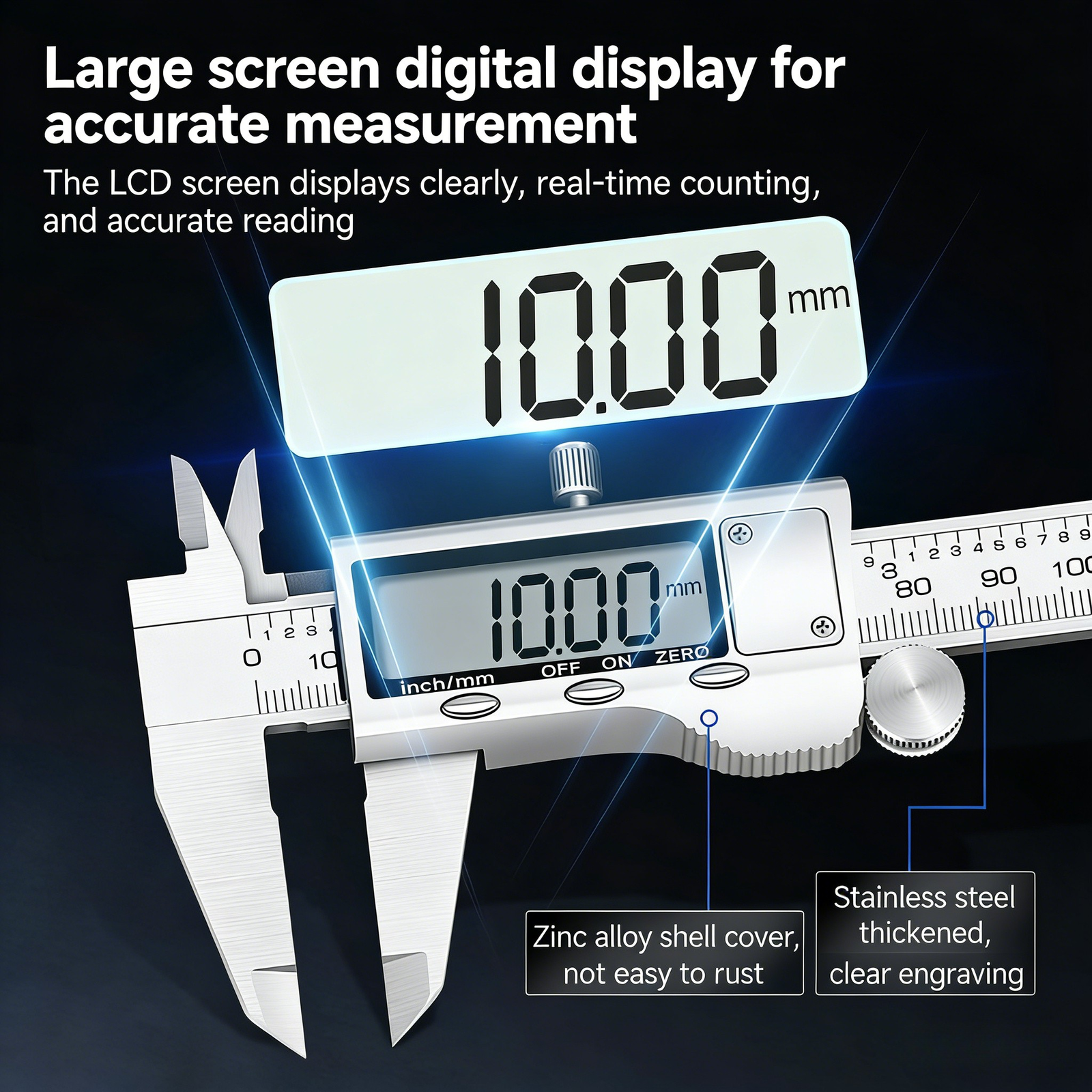 Professional-grade digital caliper designed for precise measurements in 3D printing, manufacturing, and quality control applications. Essential tool for measuring filament diameter, printed part dimensions, and ensuring print accuracy.